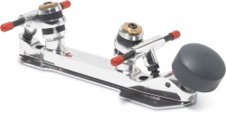Aircraft aluminum plates, highly polished, 15- aluminum trucks with adjustable pivot pins and micro adjustable truck settings, 7mm axles only, takes adjustable toe stops (included).